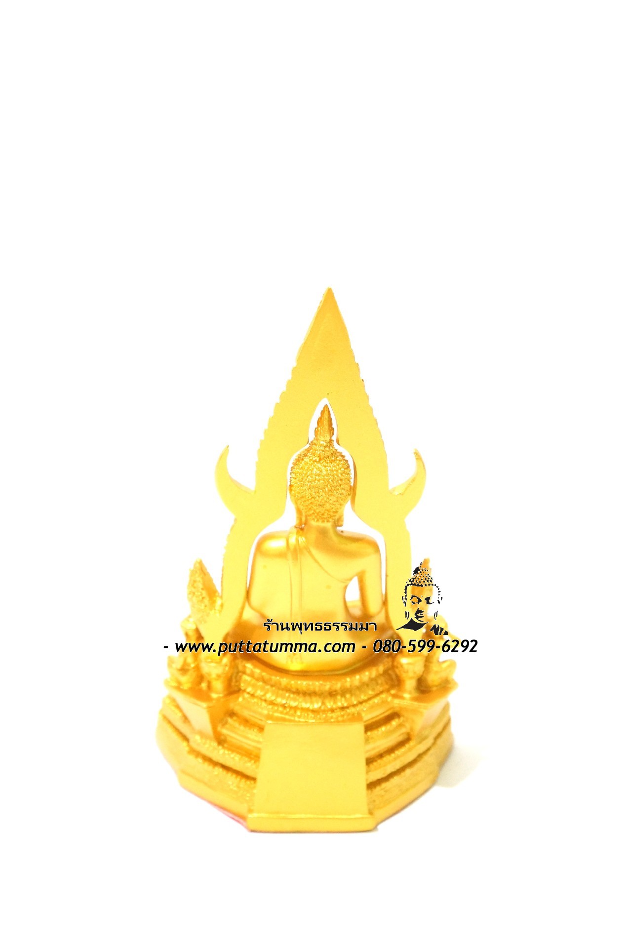 พระพุทธรูปปางมารวิชัย ซุ้มแก้ว ( พระพุทธชินราช ) สีทอง เนื้อเรซิ่น หน้าตัก 3 นิ้ว สูง 8 นิ้ว