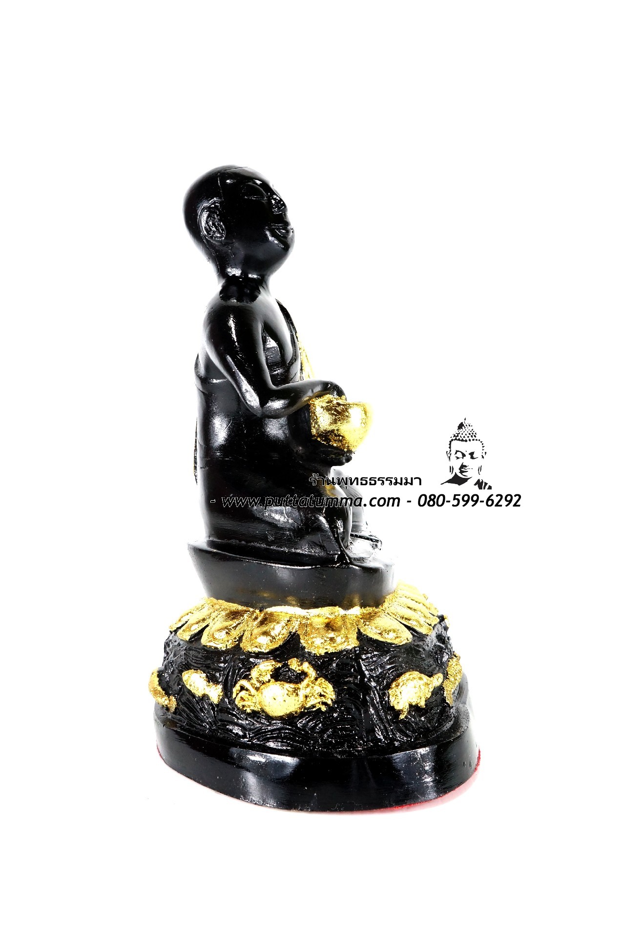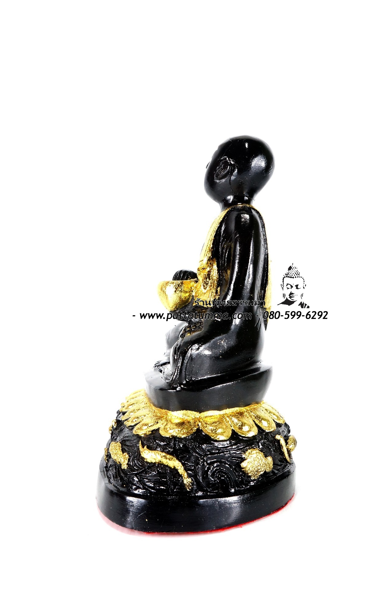 พระอุปคุต ปางจกบาตร ( ปางฉันอาหาร) สีดำปิดทอง เนื้อเรซิ่น ขนาด 5 นิ้ว สูง 7 นิ้ว